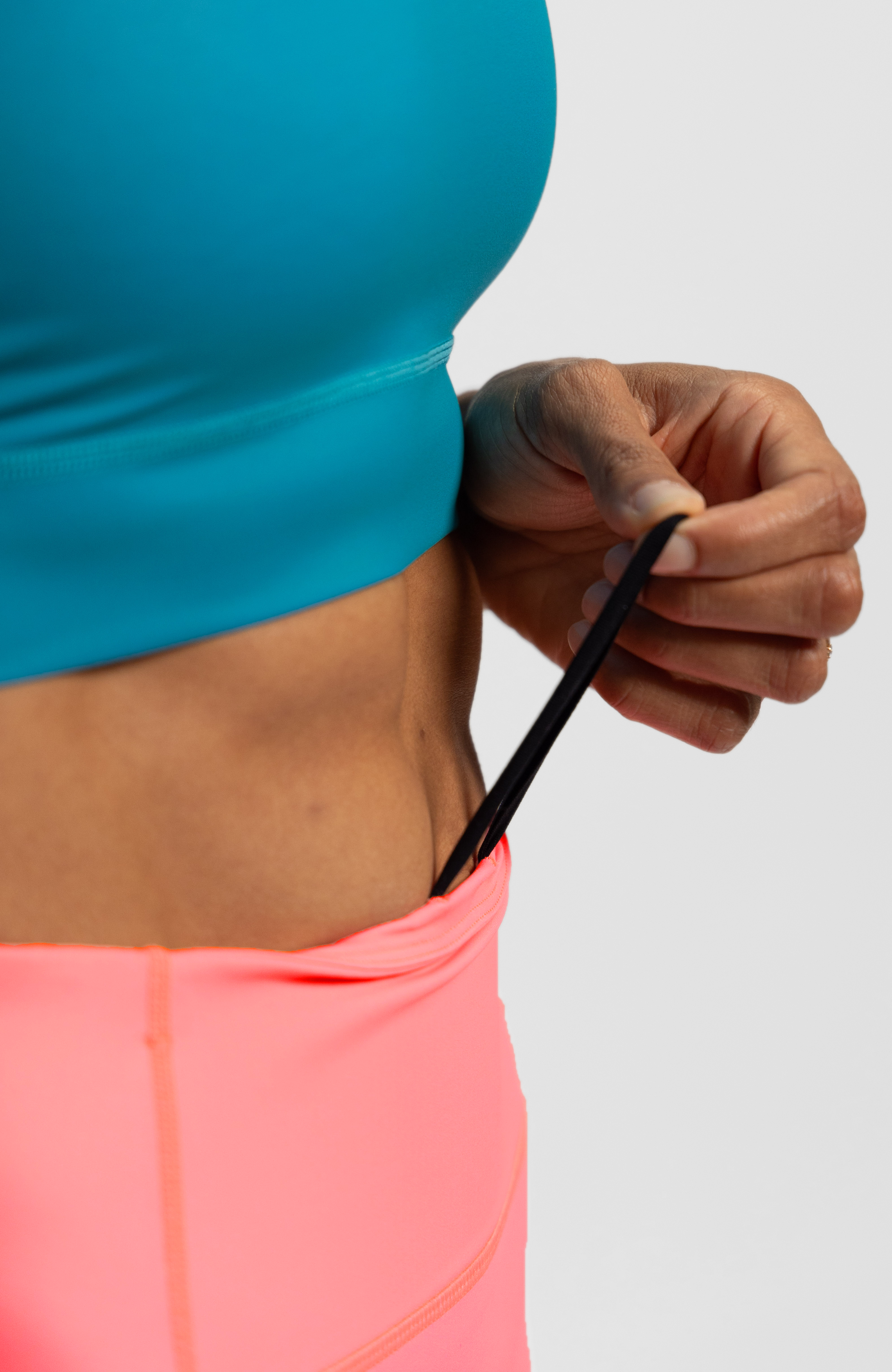 Pockets (Plural!): Two perfectly placed pockets that hold your gels, keys, or phone—because hands-free is the way to be. One secure zip pocket in the rear